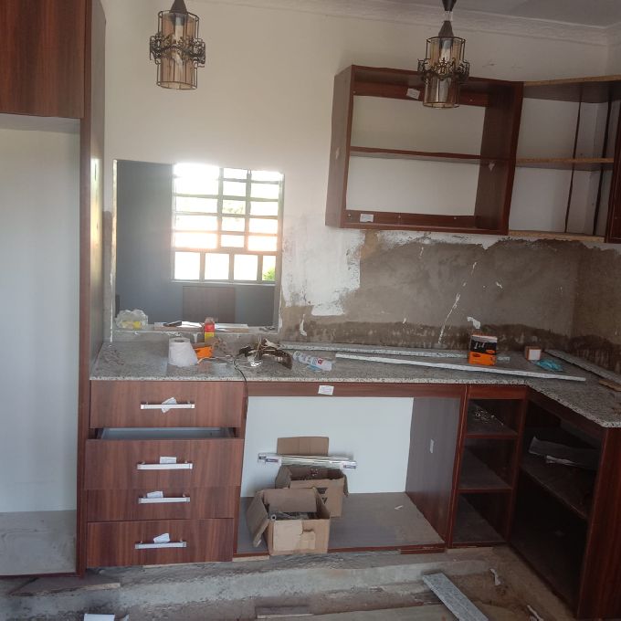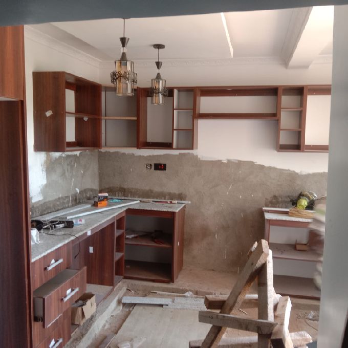 In Uthiru, our team had the privilege of transforming a client's kitchen space with our exceptional fitting services for Dark Walnut MDF Kitchen Cabinets. This comprehensive project encompassed the design, manufacturing, and precise installation of the cabinets, providing the kitchen with a sleek and contemporary aesthetic. We meticulously crafted each cabinet using premium MDF material, skillfully finished in a rich Dark Walnut tone, ensuring durability and an elegant, timeless look. Our installation experts took great care in aligning the cabinets perfectly, maximizing the kitchen's functionality while creating a harmonious layout. The final result was a seamless blend of style and practicality, offering ample storage space while enhancing the overall visual appeal of the kitchen. By prioritizing quality craftsmanship and client satisfaction, we delivered a kitchen space that not only meets but exceeds expectations. Our Dark Walnut MDF Kitchen Cabinets fitting services have left a lasting impression, providing the Uthiru client with a modern, sophisticated kitchen they can enjoy for years to come.