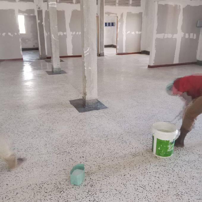 Our recent project in Eastleigh involved installing exquisite terrazzo flooring in a modern apartment complex, showcasing our commitment to combining aesthetics with functionality. The client opted for terrazzo due to its durability and the unique appeal of its polished finish, which enhances the contemporary design of the apartment interiors. The project began with a detailed consultation to understand the client's vision and the architectural nuances of the apartment. We proposed a custom blend of natural stone chips and colored glass embedded in a cementitious binder, creating a vibrant, yet sophisticated, pattern that complements the minimalist decor of the space. Our skilled team executed the installation with precision, ensuring a seamless surface across the expansive living areas, kitchen, and bathrooms. The process included meticulous preparation of the substrate, careful mixing of materials, and expert finishing techniques to achieve a high-gloss surface that is both visually striking and highly resistant to wear. The finished terrazzo flooring has transformed the apartment, delivering a luxurious and durable surface that elevates the living experience. This project in Eastleigh not only met but exceeded client expectations, solidifying our reputation as leaders in high-quality flooring solutions.